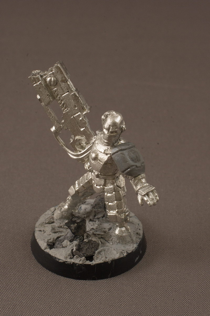 Most of the models were pretty straightforward, but the Shas’ui came without a shoulder pad. Either they weren’t standard then, or they assumed you had a spare from a Fire warrior squad. I didn’t have one, but I did want one, so I dusted of my sculpting skills and set to work. I’m not dissatisfied with the result.