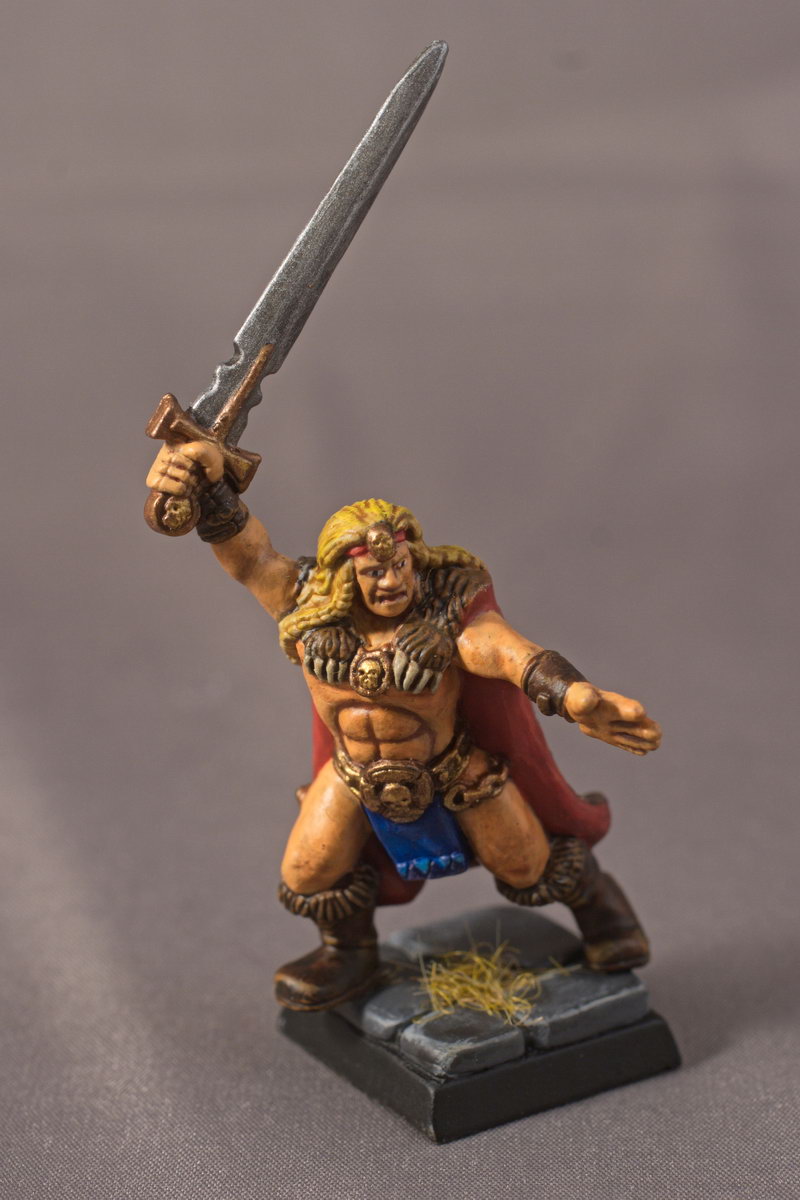 The barbarian was tricky. These are old-style plastics, which were bad at showing fine detail. With these centerpiece models, it’s often there, but not sharply defined. For instance, there is a dagger in the barbarian’s right boot, but if you don’t paint it, it’s hardly visible. This also meant that the muscle tone is hard to get right. The edges are either very hard, or not there, meaning it’s hard to use washes. But altogether, I’m not dissatisfied with the result.
