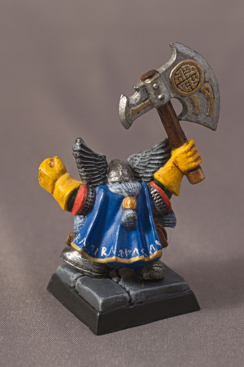 I originally modelled the Dwarf on a scenic base. This looked nice, but was a hassle during play. It also made the model the tallest of the four, which was just silly. When I picked up painting again, I got a set of pre-fab resin dungeon bases from Back2Base-ix, and moved the Dwarf to one of those along with the others.